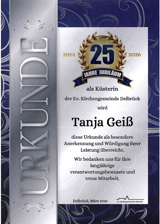 Delbrück. Sie stellt die Stühle für Veranstaltungen und Gottesdienste, begleitet die verschiedensten Veranstaltungen vom Konfitag über die Kinderkirche bis hin zu den Weihnachtsgottesdiensten. Schlicht, sie ist immer da, wenn Hilfe gebraucht wird - und das seit inzwischen 25 Jahren. Im März 2001 nahm Tanja Geiß ihren Küsterdienst in der evangelischen Kirchengemeinde in Delbrück auf.
