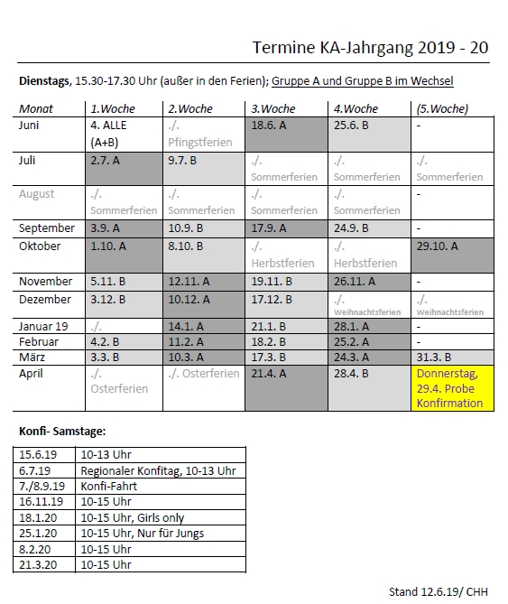 "Am Dienstag, 4.Juni 2019 um 15.30 Uhr treffen sich die Konfis des neuen Jahrganges 2019-20 zum ersten Mal im Gemeindezentrum Segenskirche.