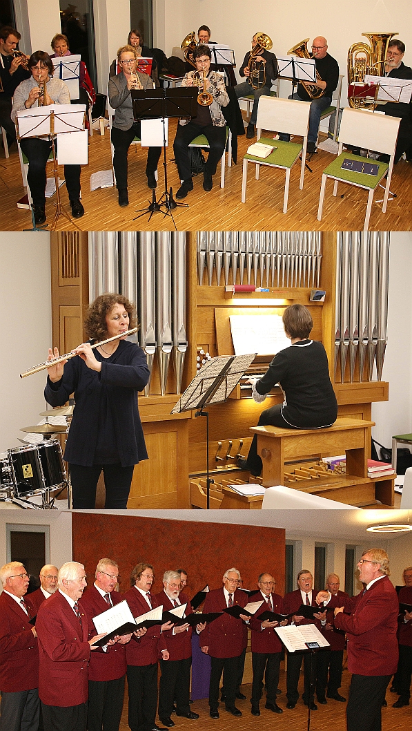 Neben dem Männerchor und dem Bläserkreis wirkten an der Orgel Tjuma Möllers und Larissa Bokk, Anja Göke an der Querflöte sowie Karin Korff an der Gitarre und Sologesang an dem Konzert mit. Bei zahlreichen Liedern waren die rund 75 Konzertbesucher auch zum Mitsingen eingeladen. Eine bunte Mischung aus klassischen und weihnachtlichen Musikstücken stand auf dem Programm. „Ich hoffe, Sie können nun voller Musik im Herzen in den Abend gehen“, sprach Pfarrerin Gabriele Hische die Besucher direkt an.